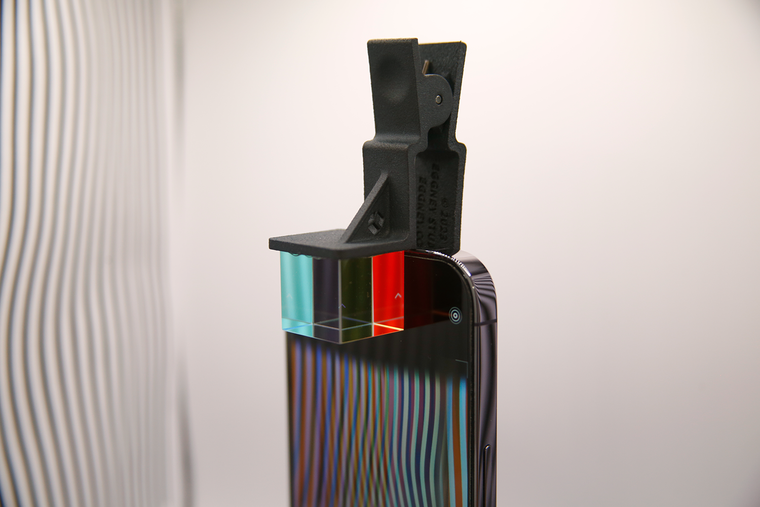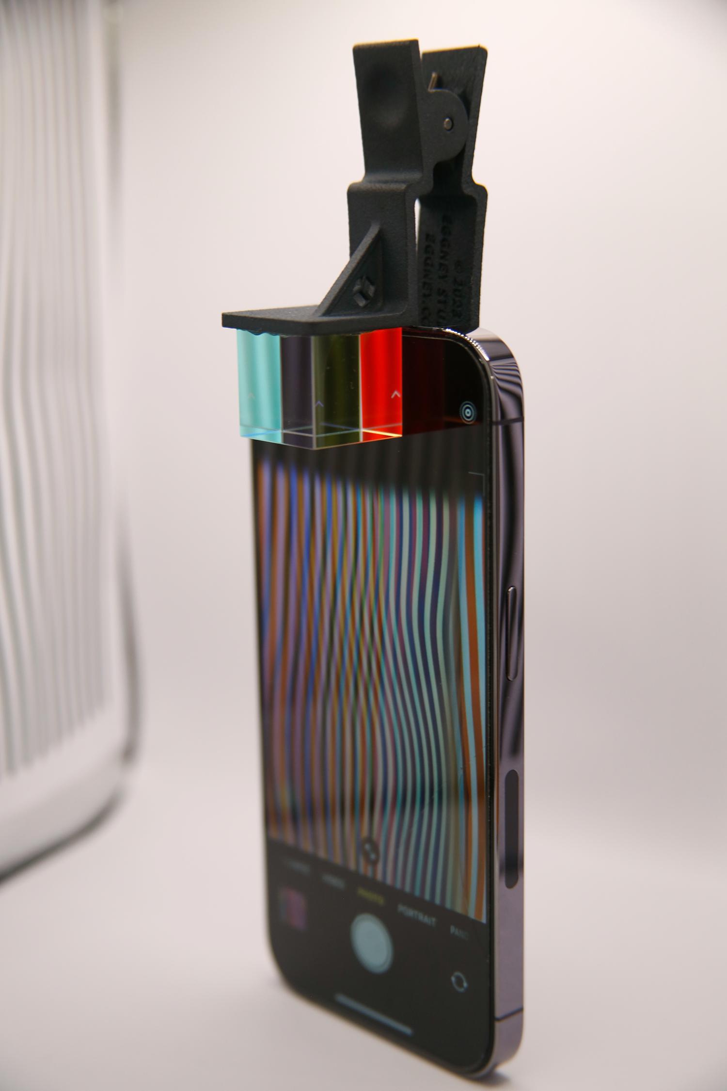 Clip me to your phone camera and transform the world around you, kaleidoscoped into mirrored images of itself, in notes of blues, reds, yellows, and greens!